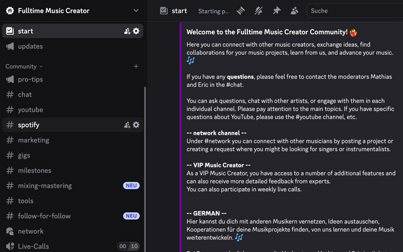 Tausche dich auf Discord mit anderen Artists aus, finde Kooperationen und andere Musiker, die genau das gleiche wollen, wie du. Gemeinsam könnt ihr euch gegenseitig motivieren und weiter wachsen. So holt ihr das beste aus eurer Musik raus.